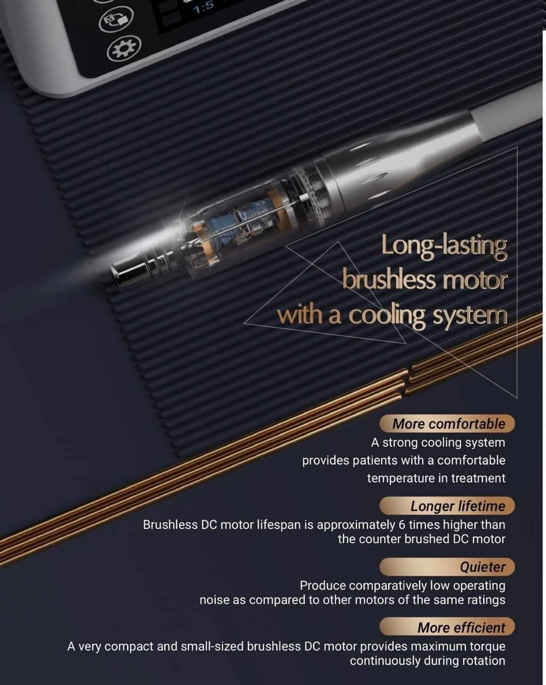 التورك والسرعة ثابتة متتأثر مهما سلطت ضغط على سطح السن لان التورك والسرعة كهربائي مالها علاقة بالهواء..